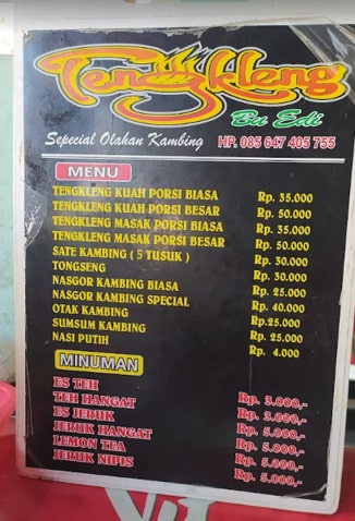 - Kepala kambing + 4 kaki – Rp 150.000 (4–8 orang)