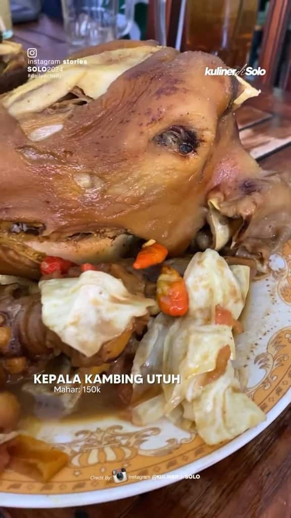 • Tengkleng Solo Kepala Kambing + 4 Kaki – Harga Rp 150.000,- per porsi. Bisa dinikmati oleh 4 hingga 8 orang, sangat pas untuk makan bersama.