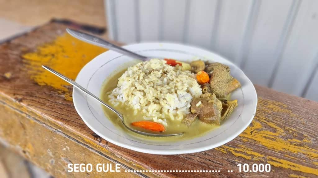 Biasanya sego gule hanya tersedia pada malam hari, mengikuti kebiasaan lama masyarakat Solo. Meski sederhana, rasa kuahnya kuat dan konsisten karena menggunakan racikan bumbu tradisional.