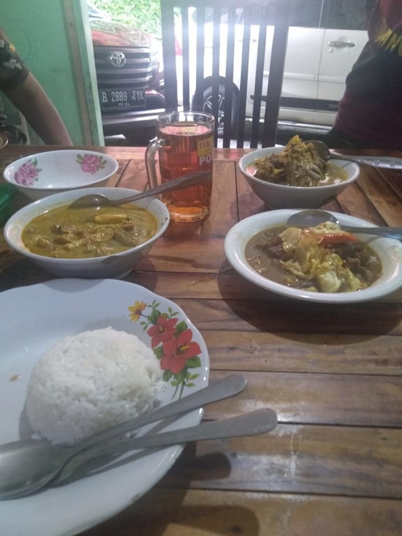 - Sego gulai kambing – Rp 10.000 (tersedia malam hari)